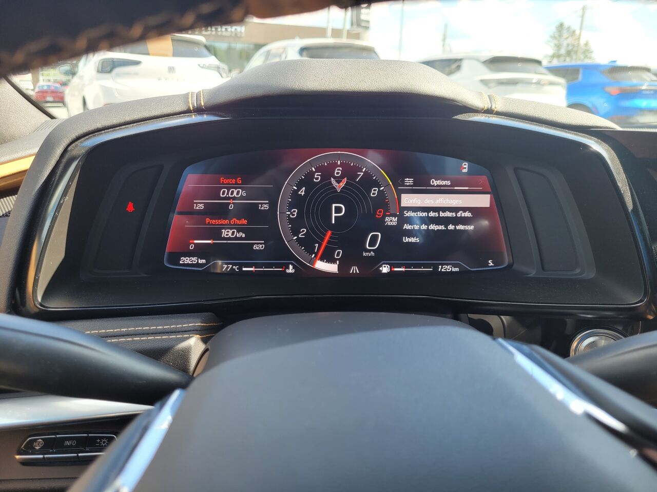 head-up display colour display with 3 modes: tour, sport, track; can display speed, gear, tach, shift lights, turn signals, bright headlamps, turn-by-turn navigation, g-metre, speed limit, lap times